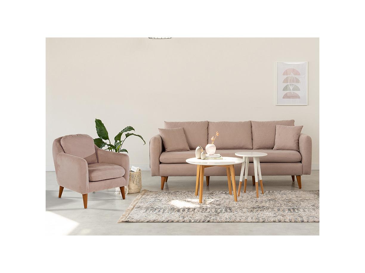 Tento produkt je vyrobený z tkaniny a z hrabového dreva. Jeho rozmery sú šírka 215 cm, výška 91 cm a hĺbka 85 cm, čo z neho robí ideálny doplnok pre vašu domácnosť.