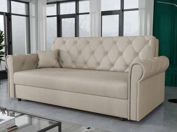 Sedačka Clivia Roma IV je ideálnou voľbou pre tých, ktorí hľadajú pohodlie a štýl. Dlhý, náročný deň a jediné, o čom snívate, je relaxovať pred televízorom? Pohovka Clivia Roma IV je odpoveďou na dokonalý relax! Je ideálna do menších aj väčších interiérov v centre mesta. Jej dizajn nadchne každého! Prešívanie na operadle a podrúčkach prináša do miestnosti luxus a eleganciu. Je vyrobená z príjemného čalúnického materiálu v najmodernejších odtieňoch! Určite posunie váš komfort pri relaxácii na vyššiu úroveň. Vďaka funkcii rozkladu poslúži aj ako pohovka na spanie. Zabezpečte si ďalší priestor na ubytovanie hostí. V okamihu sa zmení na pohodlný priestor na spanie. Clivia Roma IV je vybavená aj veľkorysým úložným priestorom na lôžkoviny, prikrývky a vankúše. Dômyselne ukrytý sa postará o dokonalú organizáciu vo vašej domácnosti. Rozmery: dĺžka: 188 cm, šírka: 98 cm výška: 85 cm, plocha na spanie: 196 x 152 cm, rozmery úložného priestoru: dĺžka: 149 cm, šírka: 66 cm, výška: 19 cm Prevedenie: konštrukcia: borovicové drevo + 15 mm drevotriesková doska, sedadlo: pena T25/42 + vlnitá pružina typu A, operadlo: pena T25/42, rozkladacia pohovka, má funkciu spania, priestor na lôžkoviny, automatický rozkladací mechanizmus typu americana, kovové nohy v čiernej farbe, čalúnené operadlo napevno, vankúš bez zipsu v cene, voľne stojaca pohovka (operadlo čalúnené látkou) Záruka: 24 mesiacov Ďalšie informácie: nábytok sa dodáva vcelku a nevyžaduje si montáž
