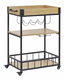 Tento multifunkčný a nadčasový kuchynský vozík sa hodí nielen do obývačky, ale aj do kuchyne či jedálne a hodí sa aj na stretnutia s priateľmi. Je vyrobený z kovu a MDF, je stabilný a odolný, takže vám bude dlho slúžiť. Kuchynský vozík je vybavený štyrmi kolieskami pre pohodlné používanie a disponuje praktickými úložnými priestormi vrátane špeciálneho stojana na víno a držiakov na poháre.