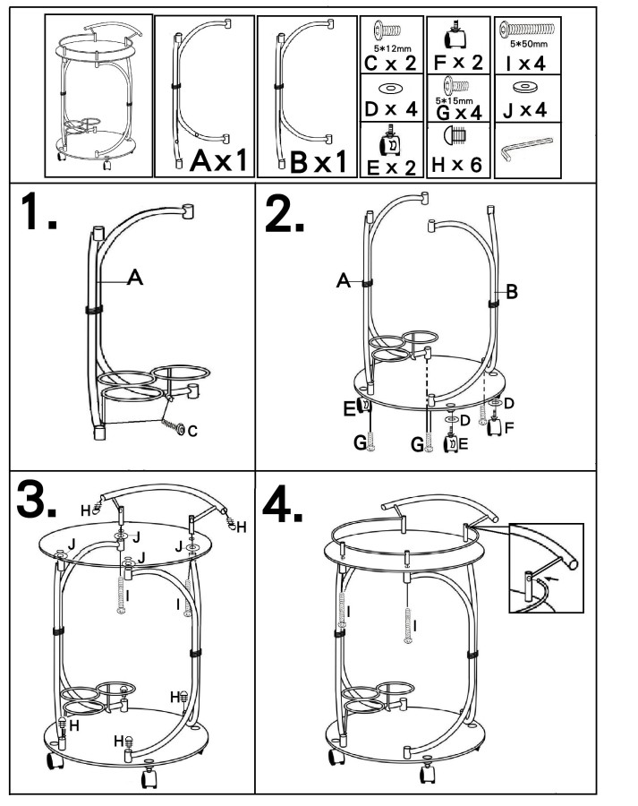 Servírovací stolík Vresa 83871 2BKG (čierna) s výškou 72 cm a hĺbkou 45 cm je ideálnym doplnkom pre Vašu obývaciu izbu alebo reštauráciu. Tento praktický stolík ponúka dve okrúhle odkladacie úrovne z čierneho skla s maximálnou nosnosťou 3,5 kg. Konštrukcia z kovu vo farbe chrómu dodáva celkovému dizajnu stolíku elegantný vzhľad. Stolík má štyri pochrómované kolieska a stojan na fľaše v dolnej časti, čo z neho robí moderný a praktický nábytok. Rozmery sú 50x72x45 cm. Stolík je dodávaný v demonte a jeho sklenené úrovne sú vhodné na uskladnenie viacerých vecí.