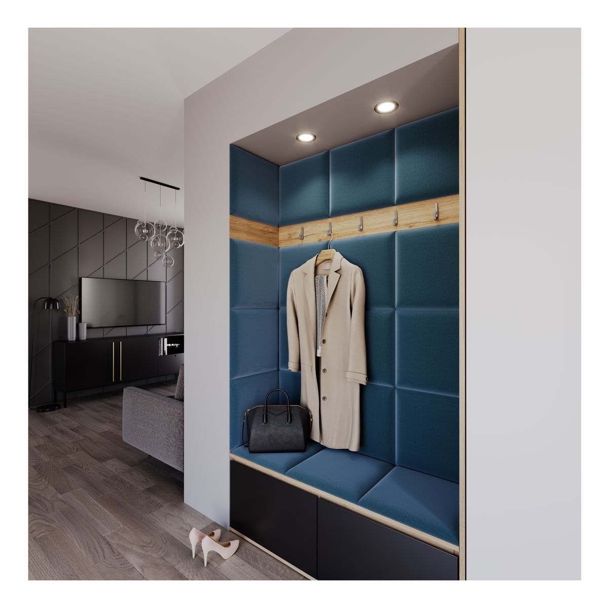 - Set 19 čalúnených panelov Quadra 120x160 cm (modrá)