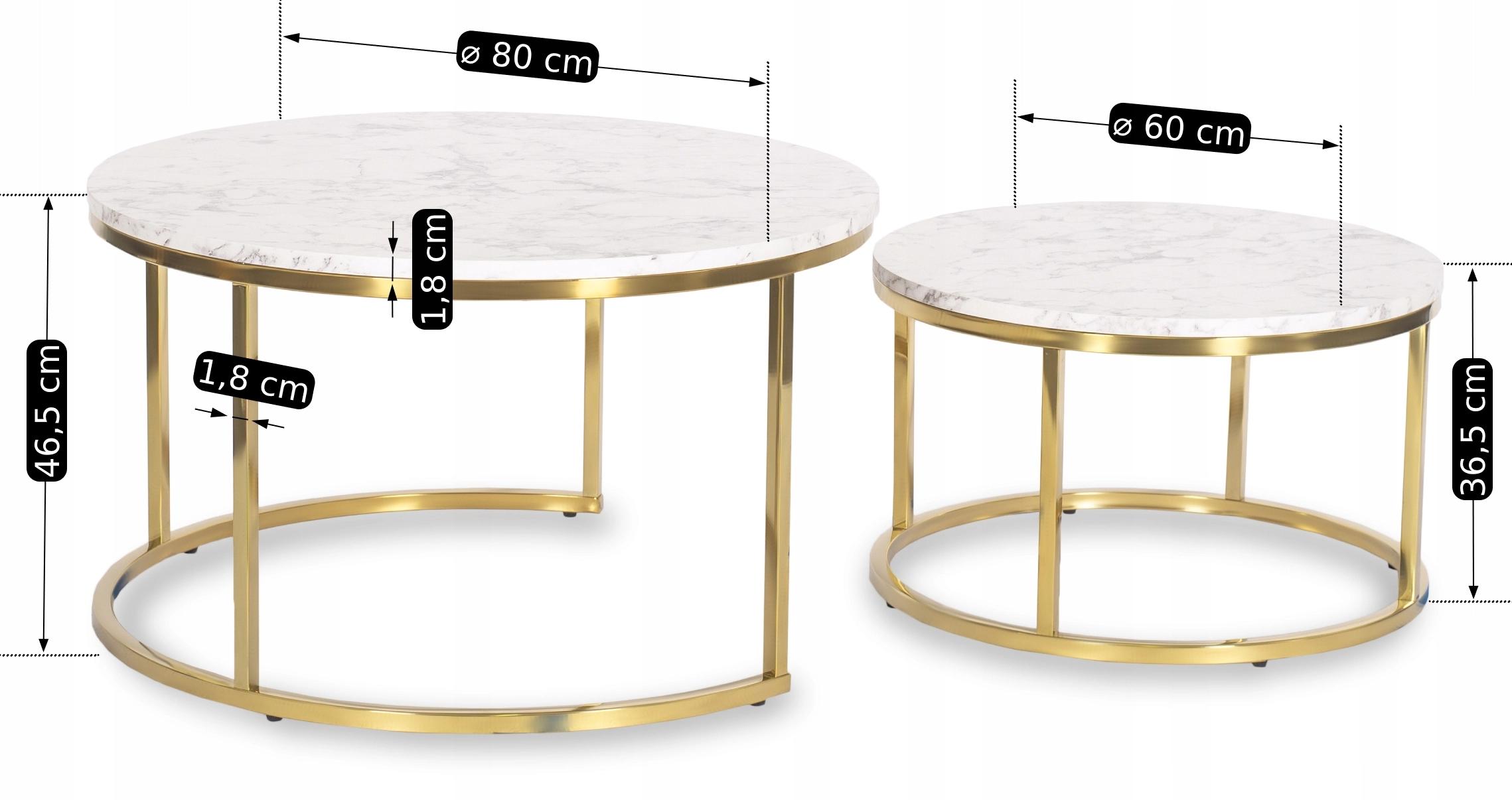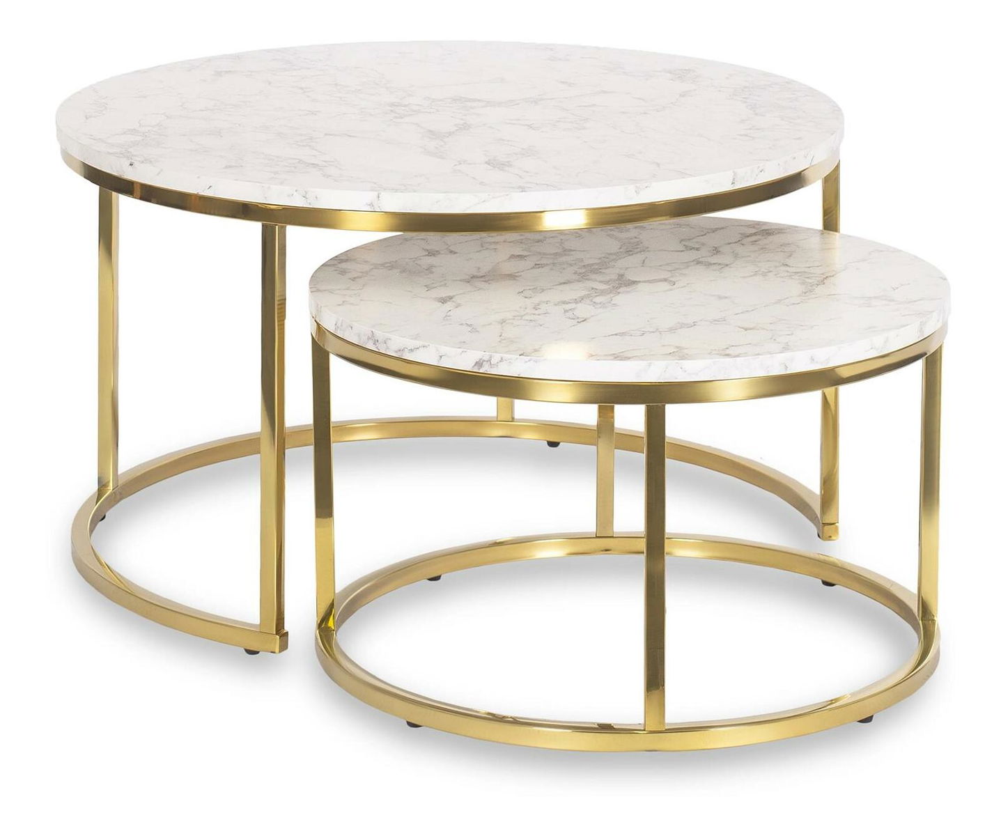 Set 2 konferenčných stolíkov Oponia Max (mramor + zlatá)