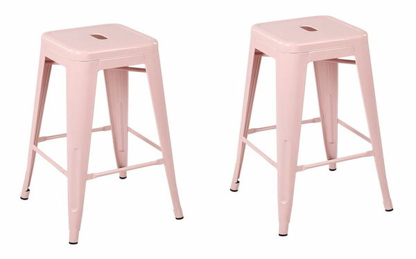 Pohodlná, praktická a štýlová súprava 2 barových stoličiek je dokonalým doplnkom do jedálne v industriálnom a modernom štýle. Vďaka tomu, že sú stohovateľné, ich možno skombinovať s akýmkoľvek kuchynským vybavením. Stoličky je možné použiť aj v kúpeľni, kancelárii alebo garáži. Sú vyrobené z ocele s práškovou povrchovou úpravou a na nohách majú protišmykové podložky, ktoré zároveň ochránia podlahu pred poškodením. Priečne nosníky na všetkých štyroch stranách môžu slúžiť aj ako pohodlné opierky nôh.
