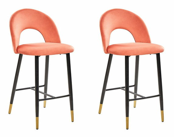 Tieto stoličky sú výsledkom dokonalej kombinácie retro dizajnu a moderného štýlu. Zamatové čalúnenie je nielen pekné na pohľad, ale aj nenáročné na údržbu. Oceľové nohy v čierno-zlatom prevedení nápadne pripomínajú dizajn 60. a 70. rokov a v kombinácii s kontrastnou farbou čalúnenia a netradičným dizajnom operadla vytvárajú estetickú kompozíciu ideálnu do kuchyne alebo jedálenského kúta.