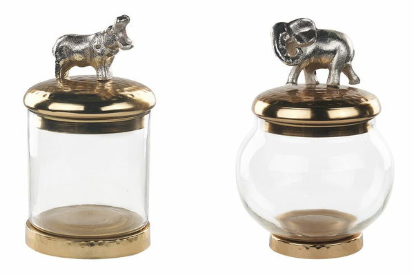 Táto súprava dekoratívnych dóz vám poslúži na odkladanie obľúbených šperkov a bižutérie alebo iných drobností a do vášho interiéru vnesie sofistikovanosť štýlu glamour. Obe dózy sú ručne vyrobené zo skla a hliníka, takže sú odolné a vyžadujú si len minimálnu údržbu, aby vám vydržali roky. Veká sú ozdobené figúrkami slona a hrocha, vďaka ktorým určite upútajú pozornosť hostí.