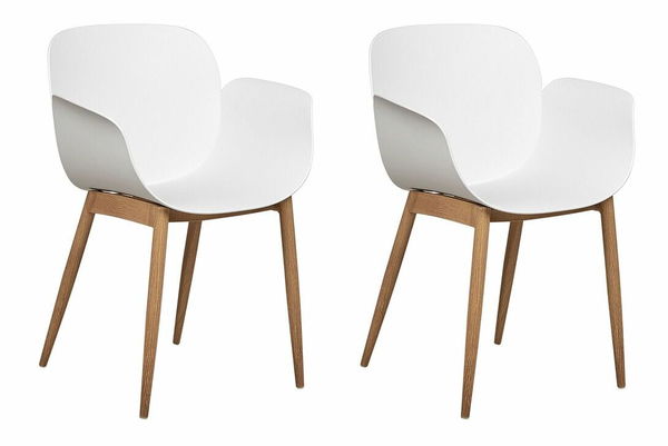 Táto nádherná súprava moderných jedálenských stoličiek je ideálnou voľbou do akejkoľvek kuchyne alebo jedálne. Jednoduché a elegantné stoličky sú vyrobené z odolného plastu a ich sedadlá sú vytvarované tak, že ich vyvýšené bočné strany slúžia ako opierky na ruky. Biele sedadlá dopĺňajú kovové nohy s povrchovou úpravou pripomínajúcou drevo. Sú stelesnením všetkého, čo by mal moderný nábytok ponúkať – sú štýlové, funkčné a nenáročné na údržbu.