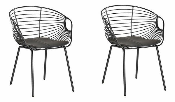 Stoličky inšpirované industriálnymi tvarmi výborne ladia so širokou škálou moderných interiérových štýlov. Sú vyrobené z pevného a odolného kovu a môžu sa pochváliť klasickým drôteným dizajnom na operadle a sedadle. Krásny čierny povrch a štíhle nohy im dodávajú elegantný vzhľad, vďaka ktorému pôsobia ešte viac očarujúco. Sedadlá stoličiek sú čalúnené umelou kožou v čiernej farbe a ponúkajú výborné pohodlie počas sedenia.