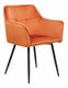 Minimalistický a zároveň luxusný dizajn stoličiek zaujme svojím neobvyklým nadčasovým vzhľadom. Jemné línie stoličiek podčiarkuje oranžové zamatové čalúnenie s prešívanými detailmi. Hladká textúra a jednoliata farba čalúnenia osvieži akúkoľvek miestnosť. Stoličky so štíhlymi kovovými nohami sa hodia k jedálenskému stolu, ale aj do spálne či domácej knižnice.