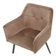Minimalistický a zároveň luxusný dizajn stoličiek zaujme svojím neobvyklým nadčasovým vzhľadom. Jemné línie stoličiek podčiarkuje oranžové zamatové čalúnenie s prešívanými detailmi. Hladká textúra a jednoliata farba čalúnenia osvieži akúkoľvek miestnosť. Stoličky so štíhlymi kovovými nohami sa hodia k jedálenskému stolu, ale aj do spálne či domácej knižnice.