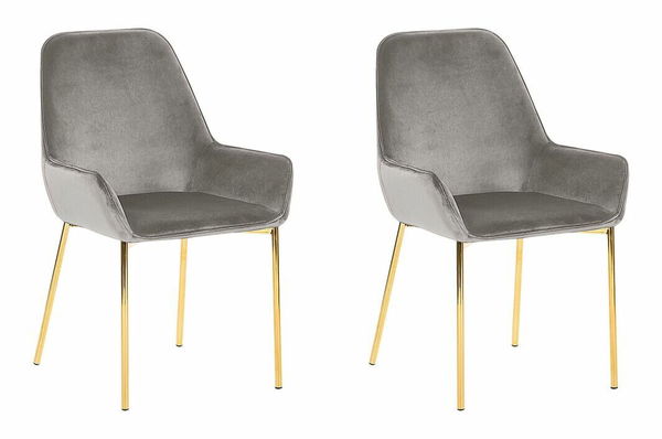 Vďaka tenkým zlatým nohám a zamatovému čalúneniu prinesú tieto stoličky nadčasový retro nádych do akéhokoľvek obývacieho priestoru. Sú navrhnuté s ohľadom na pohodlie, majú veľkoryso vystužené široké sedadlá a optimálne opierky rúk. Zadná strana operadiel je doplnená ozdobným stehom. Stoličky sú vhodné do jedální zariadených v modernom, industriálnom, ale aj vintage štýle.