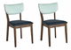 Táto súprava dvoch jedálenských stoličiek je dokonalou kombináciou moderného dizajnu s retro nádychom. Každý kus je vyrobený z vysokokvalitného kaučukového dreva, ktoré zaručuje odolnosť a stabilitu. Profilované operadlá čalúnené svetlomodrou látkou krásne ladia s tmavomodrou sedacou časťou a tmavými drevenými nohami. Vďaka konštrukcii bez bočných opierok ich môžete umiestniť k akémukoľvek stolu.