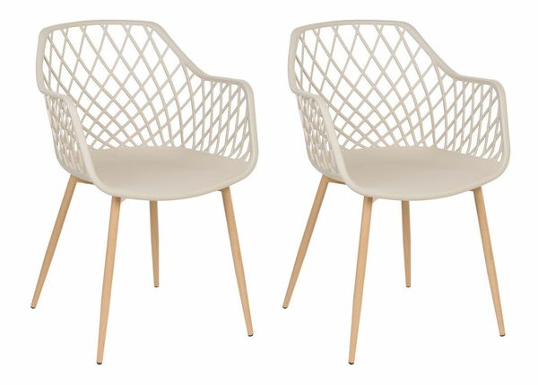 Táto súprava stoličiek je vhodná do akejkoľvek kuchyne alebo jedálne inšpirovanej škandinávskym štýlom. Sedadlá a operadlá sú vyrobené zo syntetického materiálu, ktorý sa ľahko udržiava a dlho si zachová svoj pôvodný vzhľad. Moderný sieťovaný dizajn dopĺňajú štíhle kovové nohy vo farbe svetlého dreva, ktoré dodávajú celkovému vzhľadu stoličiek prírodný akcent. Skombinujte ich so stolom v podobnom štýle a užite si pohodlie pri stolovaní.