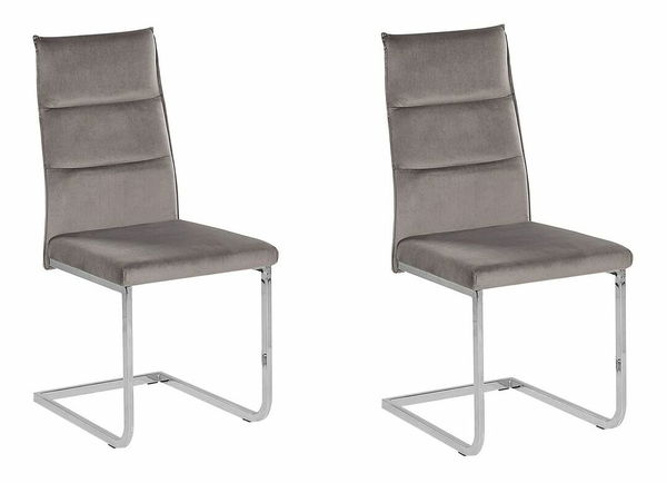 Táto súprava dvoch stoličiek bude príjemným osviežením akejkoľvek jedálne. Vďaka elegantnému dizajnu a zaujímavej konštrukcii sú ideálnou voľbou do jedálne alebo kuchyne v modernom či industriálnom štýle. Pohodlné zamatové čalúnenie sa vyznačuje rafinovaným prešívaním, ktoré dopĺňa celkový dizajn. Pevná kovová konštrukcia poskytuje výbornú stabilitu, zatiaľ čo vysoké operadlá ponúkajú úžasné pohodlie.