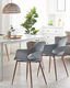 Ak chcete, aby bola vaša jedáleň moderná, navyše so štipkou škandinávskeho štýlu, potom je pre vás táto súprava stoličiek perfektnou voľbou. Stoličky sú vhodné do veľkej kuchyne alebo obývačky a budú vyzerať výborne so štvorcovým stolom. Vďaka syntetickému materiálu sú veľmi odolné a dlho si zachovajú svoju farbu. Kovové nohy vo vzhľade dreva im dodávajú jedinečné čaro.