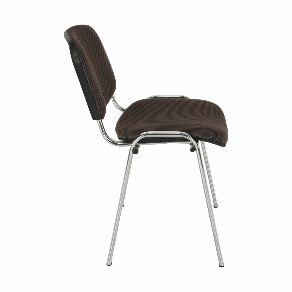 Stohovateľná stolička v chromovom prevedení s hnedým poťahom