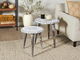 Táto súprava dvoch príručných stolíkov je dokonalým doplnkom do každého interiéru ladeného v rustikálnom či retro štýle. Stolíky sú výnimočné práve preto, že boli vyrobené ručne. Prírodné mangové drevo je sčasti pokryté bielym náterom, ktorý vytvára zaujímavý ošúchaný efekt a celému priestoru dodá jedinečný charakter. Umiestnite ich vedľa pohovky alebo postele a nechajte sa očariť ich štýlovým a zároveň funkčným dizajnom.