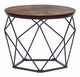 Táto súprava dvoch konferenčných stolíkov zvýrazní vzhľad vášho obytného priestoru. Vrch oboch stolíkov, vyrobený z odolnej drevotriesky vo farbe tmavého dreva, je odnímateľný. Geometrická kovová základňa v čiernom prevedení dopĺňa celkový dizajn stolíkov. Súprava konferenčných stolíkov je ideálna na servírovanie nápojov alebo občerstvenia a možno ju použiť aj na vystavenie dekoratívnych váz a rôznych predmetov.