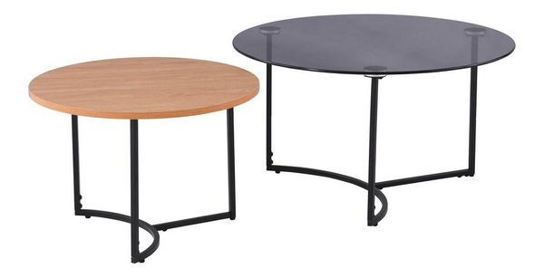 Hľadáte nábytok, ktorý sa ľahko prispôsobí vašim potrebám? Predstavujeme sadu dvoch stolíkov - moderné a všestranné riešenie pre váš interiér Stolíky sú inovatívnym prístupom k dizajnu. Stolíky potešia nielen svojou funkčnosťou, ale dodajú každému priestoru sofistikovanosť. Výhodou zostavy je jej dizajn, ktorý umožňuje jednoduché zasúvanie stolíkov do seba. Pracovné dosky vyrobené z kvalitnej melamínovej dosky a dymového skla im dodávajú elegantný vzhľad, ktorý dokonale ladí s moderným dizajnom interiéru. Čierne základy dodávajú noblesu a charakter, čím vytvárajú harmonickú kompozíciu. Stolová zostava splní vaše očakávania, dodá nielen praktickosť, ale aj vycibrený štýl do vášho bytu Podrobnosti o produkte: zostavu tvoria dva konferenčné stolíky s okrúhlou doskou, rozmery stolíka I: 60 x 41,7 cm, rozmery stolíka. II: 80 x 45 cm, materiály: prášk lakovaný kov, sklo, melamínová doska, farba: čierna, prírodná farba dreva, dymové sivé sklo.