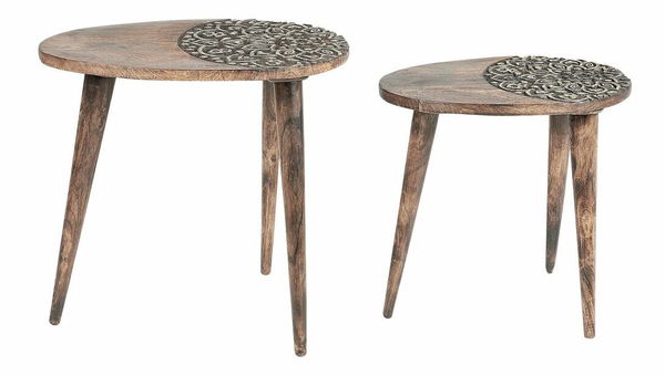 Výrazný dizajn a ručne vyrezávané kvetinové vzory - tak by sa dala charakterizovať táto sada konferenčných stolíkov. Okrem toho, že sú nádherné a jedinečné, boli ručne vyrobené z kvalitného mangového dreva, vďaka čomu sú odolné, nenáročné na údržbu a vydržia vám mnoho rokov. Vďaka trom nohám sú veľmi stabilné, takže na nich bez obáv môžete položiť jedlo, nápoje alebo rôzne iné doplnky.