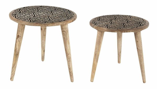 Táto sada ručne vyrobených konferenčných stolíkov vynikne vo vašej obývačke bez ohľadu na jej štýl. Oba kusy boli vyrobené z mangového dreva, vďaka čomu sú mimoriadne odolné, sú nenáročné na údržbu a vydržia vám mnoho rokov. Vo vrchnej časti sú ozdobené dekoratívnymi rezbami, ktoré očaria všetkých vašich hostí. Tieto stolíky sú skvelým doplnkom do rustikálnych a boho ladených interiérov.