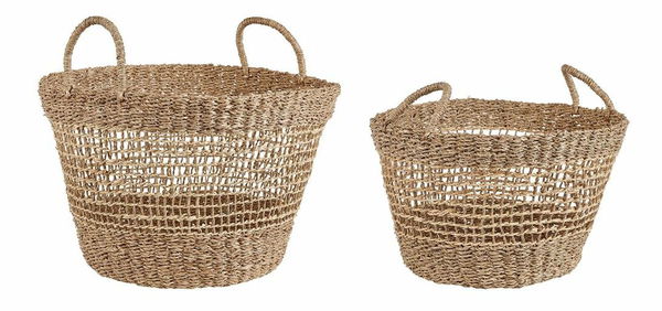 Táto nádherná súprava 2 košov je vyrobená z morskej trávy a palmových listov a svojím vzhľadom vylepší dekoráciu každého interiéru. Košíky sú vybavené rúčkami a sú nielen praktické, ale aj dekoratívne. Sú ideálne do detskej izby na odkladanie hračiek alebo do kúpeľne, kde ich môžete použiť ako štýlové koše na bielizeň. Dokonca ich môžete využiť aj v obývačke a schovať do nich všetky drobnosti, ktoré zatiaľ nenašli svoje miesto. Keďže sú vyrobené ručne, každý z nich je jedinečný.