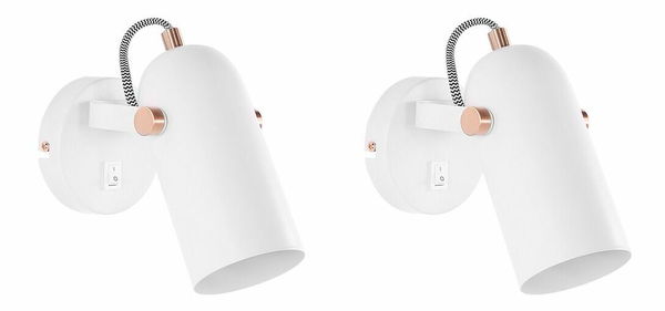 Táto súprava 2 nástenných kovových svietidiel v industriálnom dizajne ľahko splynie so zariadením moderného a minimalistického interiéru. Tienidlá poskytujú silné osvetlenie, ktoré je s ľahkosťou možné nasmerovať požadovaným smerom. Robustné a odolné biele kovové prevedenie je funkčné a elegantné a nastaviteľné rameno robí z tejto súpravy ideálne osvetlenie do vašej domácej pracovne alebo študovne.