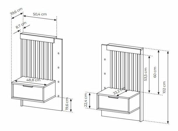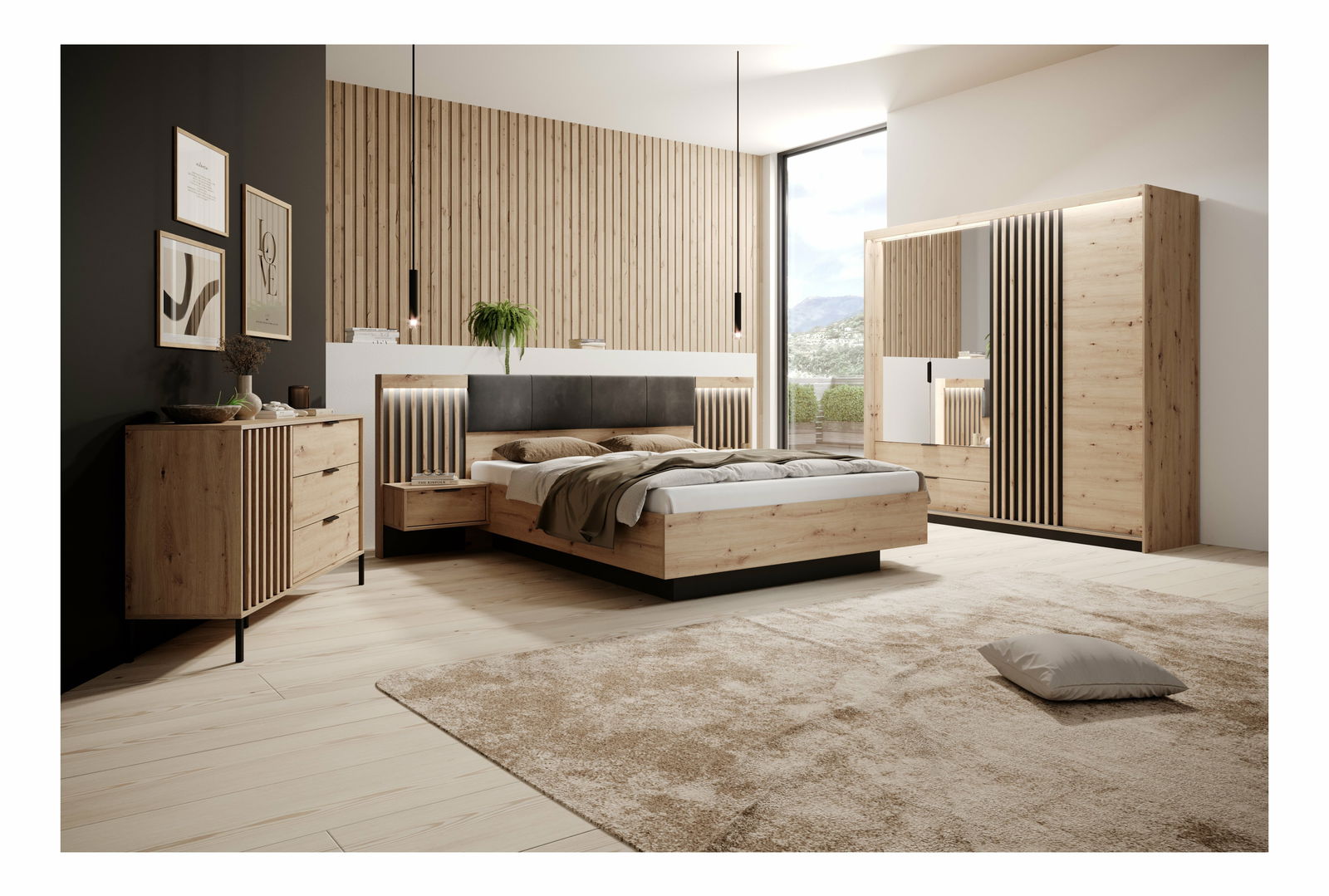 ZobraziťSúprava Set 2 ks. nočných stolíkov - Tallin D (dub artisan + antracit) s výškou 104 cm a šírkou 50.4+50.4 cm Dub Artisan + Antracit a hĺbkou 39.6 cm je dokonalou kombináciou tlmených zemitých farieb, ktorá dodáva každej spálni útulnú a prirodzenú atmosféru. Kolekcia TALLIN je charakteristická modernými čelami šatníkovej skrine, komody a postele, ktoré zdôrazňujú jedinečný charakter jednotlivých kusov. Táto mimoriadne funkčná kolekcia obsahuje priestrannú šatníkovú skriňu s veľkým zrkadlom, osvetlením a zásuvkami, ktorá sa skvele dopĺňa s priestrannou komodou a pohodlnou posteľou. Nočné stolíky sú nielen užitočné, ale tiež súčasťou tejto bohaté kolekcie, ktorá vám ponúka všetko, čo potrebujete pre vašu spálňu.