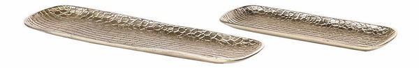 Akákoľvek drobnosť bude vyzerať dokonale, ak ju položíte na takýto elegantný podnos. Tieto podnosy sú vyrobené z hliníka a majú textúrovaný povrch v zlatom farebnom prevedení, vďaka ktorému pôsobia elegantne. Možno na ne položiť sviečky, šperky, kľúče, okuliare alebo čokoľvek iné. Sú nielen praktické, ale aj mimoriadne dekoratívne.