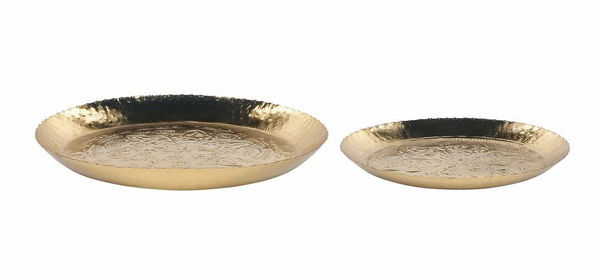 Táto súprava dvoch dekoratívnych podnosov vnesie do vášho interiéru nádych elegancie. Podnosy s orientálnym dizajnom a textúrovaným povrchom sa stanú ozdobou akéhokoľvek stola. Sú ideálne ako podnosy na sviečky alebo rôzne iné drobnosti. Využijete ich či už v spálni alebo v predsieni.