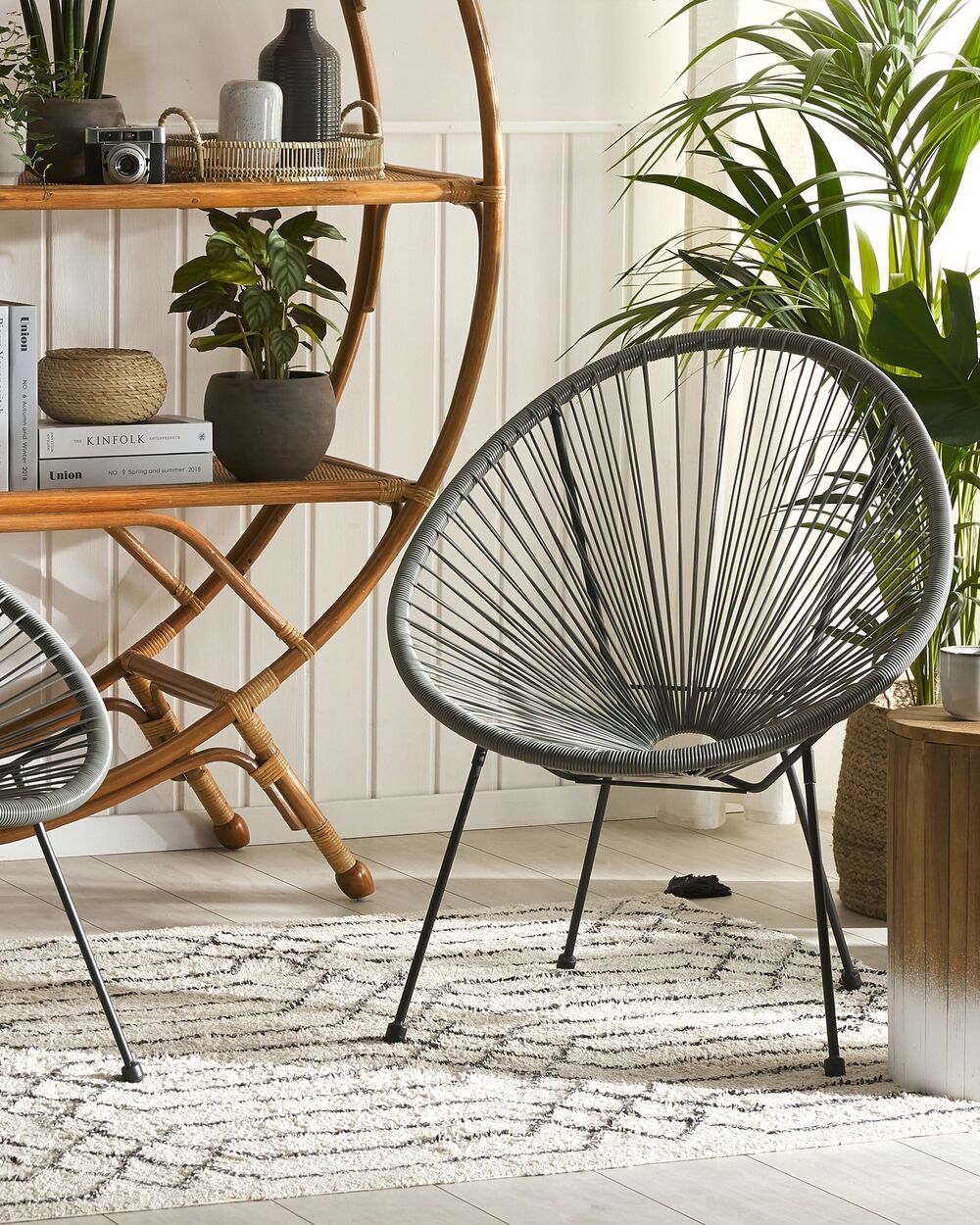 Súprava kresiel inšpirovaná klasickým mexickým dizajnom osvieži každý vnútorný aj vonkajší obytný priestor. Priestranná sedacia plocha je vyrobená z umelého ratanu v príjemnej tmavosivej farbe. Štvornohá konštrukcia je vyrobená z robustnej ocele a poskytuje výbornú stabilitu. Tieto kreslá výborne poslúžia ako dizajnové kúsky v akomkoľvek modernom vonkajšom priestore, ale sú vhodné aj ako štýlové kreslá do obývačky.