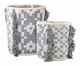 Ak hľadáte spôsob, ako rýchlo a jednoducho osviežiť zariadenie interiéru, tieto bavlnené koše môžu byť tým správnym riešením. Sú vyrobené z veľmi kvalitného materiálu, vďaka čomu sú pevné a nenáročné na údržbu. Ich najväčšou prednosťou je ich dizajn, ktorý vznikol spojením sivej a bielej farby v podobe geometrického vzoru a ozdobných strapcov na bočných stranách.