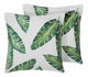 Skrášlite vzhľad vášho interiéru umiestnením týchto vankúšov na pohovku, kreslo či posteľ. Štvorcové vankúše s trendovou potlačou palmových listov výborne doplnia interiér v prímorskom alebo boho štýle. Oba vankúše majú snímateľné poťahy s praktickým zipsom.