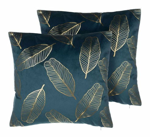 Dodajte svojej pohovke alebo posteli žiarivý nádych pomocou tejto sady 2 štvorcových dekoratívnych vankúšov. Jemne plnené vankúše sú dodávané v bavlnených poťahoch, ktoré pôsobia luxusne. Metalická potlač listov dokonale dopĺňa modrú farbu, takže vankúše sú vhodným dekoratívnym kusom pre rôzne štýly domových dekorácií.