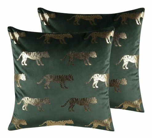 Tieto vankúše sa dokonale hodia do každého moderného, tradičného alebo minimalistického interiéru. Poťahy sú vyrobené z mäkkého zamatu s výraznou potlačou tigra na zelenom pozadí. Poťahy sú vybavené zapínaním na zips pre pohodlné a jednoduché čistenie.