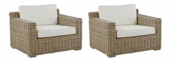 Trend ratanového nábytku zo 70. rokov sa vracia späť v podobe pohodlného dizajnu tejto súpravy záhradných kresiel, ktorá ponúka skvelé miesto na oddych i zábavu. Prírodný ratanový výplet doplní akýkoľvek priestor a vnesie doň nádych vintage štýlu. Kreslá sú vybavené hrubými sedacími vankúšmi, ktoré ponúkajú vynikajúci komfort.