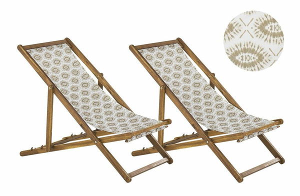 Tieto ležadlá navrhnuté v klasickom dizajne budú praktickým doplnkom vašej zostavy záhradného nábytku. Vďaka nízkej hmotnosti a skladacej funkcii ich môžete využiť nielen na terase, ale aj počas výletu na pláž alebo pikniku v parku. Operadlo môžete nastaviť do 1 z 3 dostupných polôh a usadiť sa na pohodlnom polyesterovom sedadle. Skladacie kreslá sú vyrobené z akáciového dreva vhodného do každého počasia, ktoré zaručuje stabilitu a aj po rokoch používania bude vyzerať ako nové. Súprava ležadiel sa dodáva s dvoma poťahmi v neutrálnej farbe a dvoma náhradnými poťahmi s trendovým vzorom.