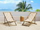 Tieto ležadlá navrhnuté v klasickom dizajne budú praktickým doplnkom vašej zostavy záhradného nábytku. Vďaka nízkej hmotnosti a skladacej funkcii ich môžete využiť nielen na terase, ale aj počas výletu na pláž alebo pikniku v parku. Operadlo môžete nastaviť do 1 z 3 dostupných polôh a usadiť sa na pohodlnom polyesterovom sedadle. Skladacie kreslá sú vyrobené z akáciového dreva vhodného do každého počasia, ktoré zaručuje stabilitu a aj po rokoch používania bude vyzerať ako nové. Súprava ležadiel sa dodáva s dvoma poťahmi v neutrálnej farbe a dvoma náhradnými poťahmi s trendovým vzorom.