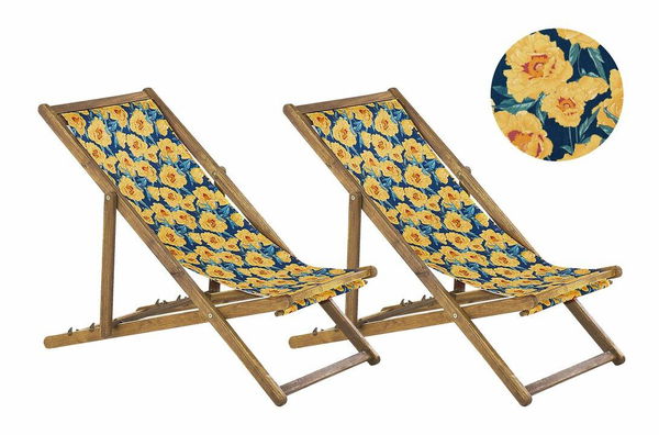Tieto ležadlá navrhnuté v klasickom dizajne budú praktickým doplnkom vašej zostavy záhradného nábytku. Vďaka nízkej hmotnosti a skladacej funkcii ich môžete využiť nielen na terase, ale aj počas výletu na pláž alebo pikniku v parku. Operadlo môžete nastaviť do 1 z 3 dostupných polôh a usadiť sa na pohodlnom polyesterovom sedadle. Skladacie kreslá sú vyrobené z akáciového dreva vhodného do každého počasia, ktoré zaručuje stabilitu a aj po rokoch používania bude vyzerať ako nové. Súprava ležadiel sa dodáva s dvoma poťahmi v neutrálnej farbe a dvoma náhradnými poťahmi s trendovým vzorom.