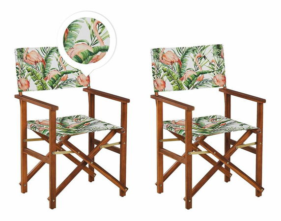 Set 2 ks záhradných lehátok s náhradnými poťahmi Ciala (tmavé akáciové drevo + vzor plameniakov)