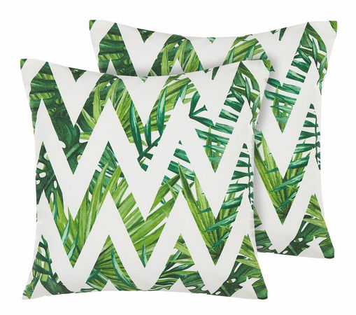 Skrášlite svoju záhradu týmito modernými, štýlovými a očarujúcimi vankúšmi vyrobenými z polyesteru. Stanú sa dokonalým doplnkom akéhokoľvek vonkajšieho priestoru, pretože sú nenáročné na údržbu a bez problémov odolajú aj zmenám počasia. Vankúše sú vybavené praktickými zipsami, takže poťahy možno kedykoľvek zložiť a vyprať. Vďaka nádhernému cikcakovému vzoru v kombinácii s listovým motívom táto súprava v priestore vynikne, pričom sa hodí k rôznym dekoráciám.