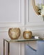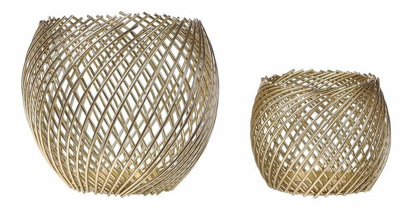 Tieto svietniky v tvare košíkov sa stanú štýlovým a pútavým doplnkom konferenčného stolíka alebo jedálenského stola. Sú vyrobené z kovovej sieťoviny v zlatej farbe a ponúkajú miesto pre hrubé alebo čajové sviečky. Vďaka modernému dizajnu budú dokonale ladiť s interiérom v modernom a elegantnom štýle.