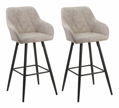 Táto dokonalá súprava barových stoličiek doplní jedáleň alebo kuchyňu zariadenú v modernom, klasickom či retro štýle. Látkové čalúnenie je zvýraznené diamantovým prešívaním, ktoré zdokonaľuje vizuálny dizajn stoličiek. Štíhle čierne nohy vyrobené z kovu s práškovou povrchovou úpravou sú doplnené opierkou na nohy, ktorá zvyšuje komfort počas sedenia.