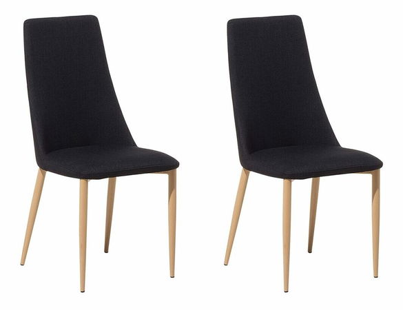 Táto súprava stoličiek prinesie do vašej kuchyne alebo jedálne nový vietor. Čierne čalúnenie, úhľadné prešívanie a dlhé elegantné nohy robia súpravu elegantnou vo svojej jednoduchosti. Kovové nohy s povrchovou úpravu v imitácii dreva nádherne dopĺňajú farbu stoličiek. Vďaka vysokým a mierne zaobleným operadlám a mäkkým čalúneným sedadlám ponúkajú úžasný komfort.