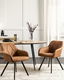 Tieto elegantné jedálenské stoličky sú najlepším spôsobom, ako doplniť vašu kuchyňu alebo jedáleň. Najviac vyniknú v interiéri zariadenom v tradičnom, modernom alebo retro štýle. Stoličky sú čalúnené jemnou látkou, majú pohodlné zaoblené operadlá a klasické diamantové prešívanie. Zošikmené nohy sú vyrobené z pevného kovu, ktorý zaisťuje stabilitu a zároveň pôsobí veľmi moderne.