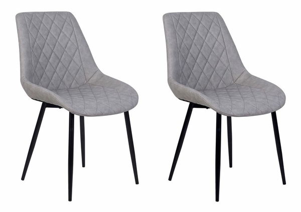 Dodajte jedálni štipku elegancie a štýlu. Táto dvojdielna sada čalúnených stoličiek z umelej kože zvýrazní interiéry zariadené v elegantnom, tradičnom a modernom štýle. Ozdobné prešívanie na sivom čalúnení a štíhle čierne nohy vytvárajú dizajn, ktorý sa hodí k rôznym štýlom zariadenia. Stoličky majú mäkkú penovú výplň, ktorá zaručuje pohodlné sedenie.