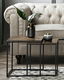 Súprava dvoch štvorcových stolíkov je dobrou voľbou do krytej zimnej záhrady, spálne alebo na chodbu. Kombinácia kovového rámu v čiernej farbe a MDF materiálu vo farbe tmavého dreva vytvára jedinečný celok vhodný do priestorov v modernom alebo industriálnom štýle. Stolíky ponúkajú dostatok úložného priestoru, možno na ne odložiť notebook alebo ich využiť ako klasické konferenčné stolíky.