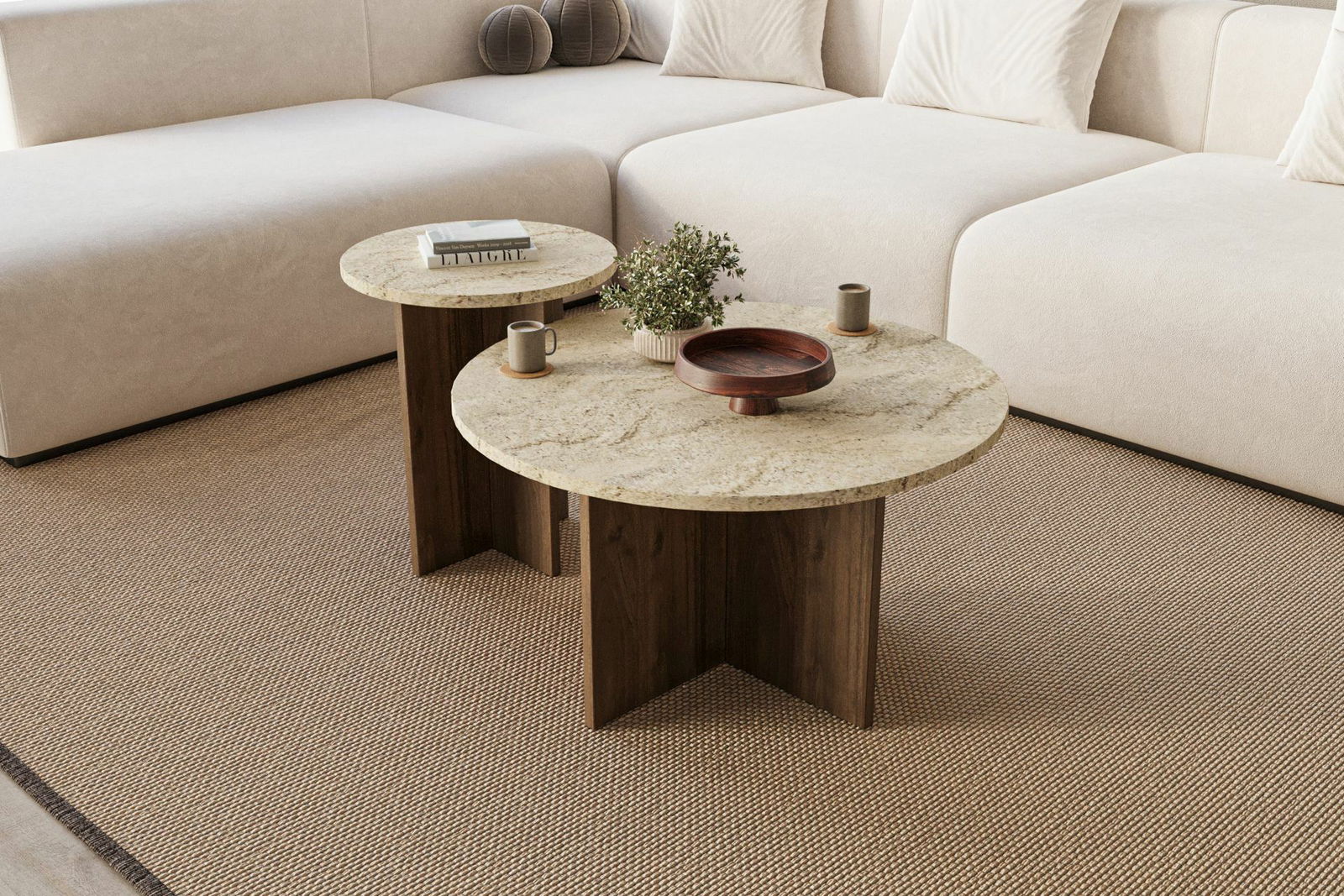 - Set 2ks. konferenčných stolíkov Priva (travertín + orech)