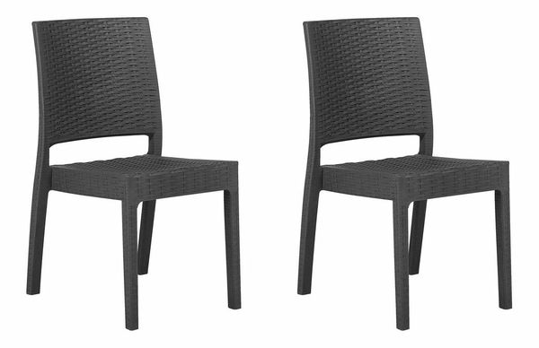 Vychutnajte si letné popoludnie a doplňte váš stôl touto sadou dvoch stohovateľných stoličiek. Sada je vyrobená z mimoriadne ľahko udržiavateľného a na údržbu nenáročného syntetického materiálu, ktorý je odolný voči nepriaznivým poveternostným podmienkam. Vďaka minimalistickému dizajnu vám stoličky budú slúžiť roky a budú vyzerať výborne na modernej terase, najmä ak ich doplníte mäkkými vankúšmi.