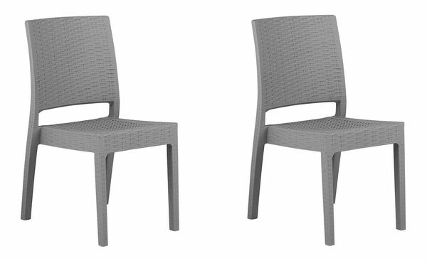 Vychutnajte si letné popoludnie a doplňte váš stôl touto sadou dvoch stohovateľných stoličiek. Sada je vyrobená z mimoriadne ľahko udržiavateľného a na údržbu nenáročného syntetického materiálu, ktorý je odolný voči nepriaznivým poveternostným podmienkam. Vďaka minimalistickému dizajnu vám stoličky budú slúžiť roky a budú vyzerať výborne na modernej terase, najmä ak ich doplníte mäkkými vankúšmi.