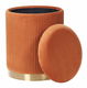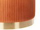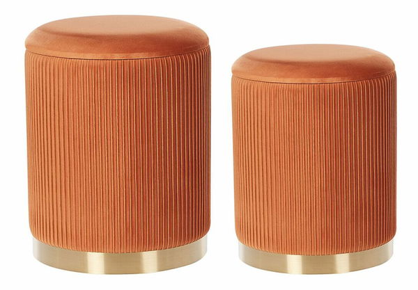 Ozdobte svoj interiér touto súpravou 2 čalúnených taburetiek. Obe sú vybavené priestranným úložným priestorom, ktorý je ukrytý pod vekom na sedadle. Vďaka ľahko udržiavateľnému a odolnému zamatovému čalúneniu vydržia dlhé roky. Vďaka pútavému zvislému prešívaniu na čalúnení v kombinácii s oranžovou a zlatou farbou obohatia každý priestor a vnesú doň nádych moderného štýlu.